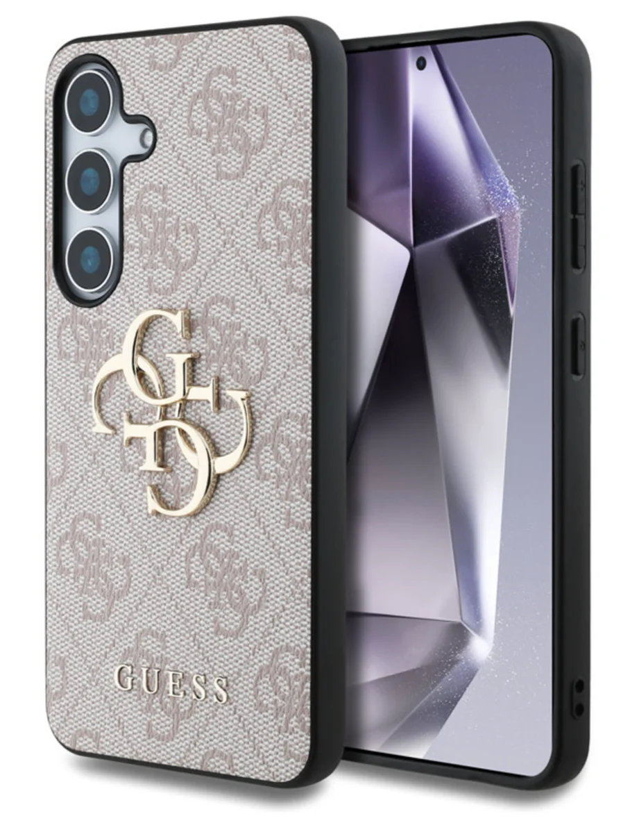 GUESS Galaxy S25 Gold Metal Logo Pink Case