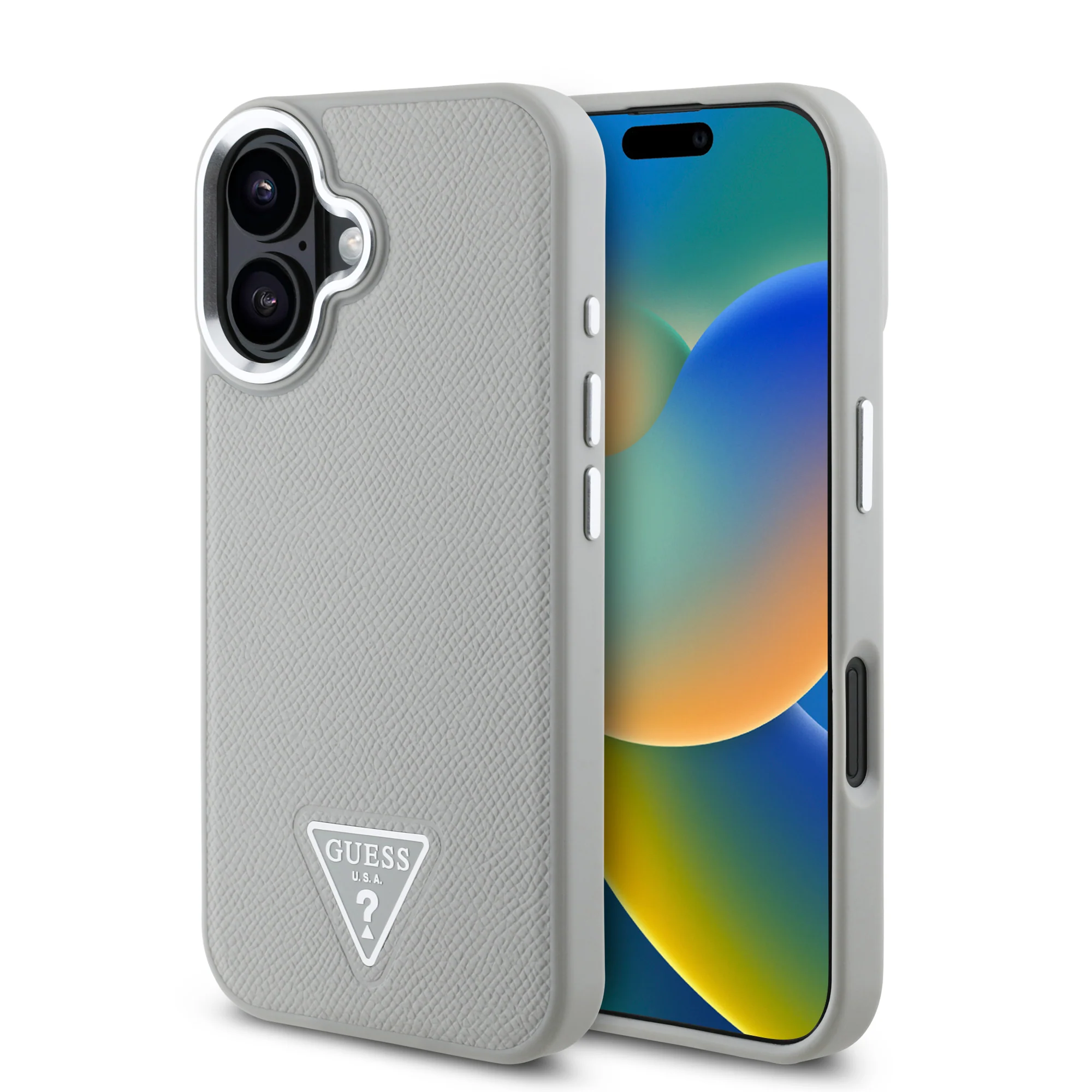 GUESS iPhone 16 Grained Triangle Case MagSafe Beige