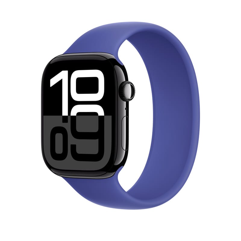 Dit solobandje van Apple is een bandje zonder gesp of sluiting. Hierdoor is het bandje rekbaar en heeft het geen overlappende delen. Het bandje is gemaakt van vloeibaar silicone, wat ervoor zorgt dat het bandje comfortabel aanvoelt. De speciale UV-behandeling zorgt ervoor dat het bandje glad aanvoelt.